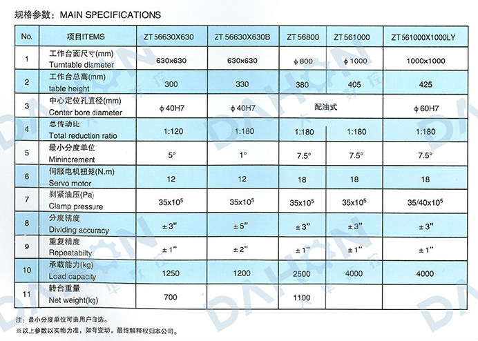 • 產(chǎn)品名稱: ZT56(630-1000)系列數(shù)控等分回轉(zhuǎn)工作臺
